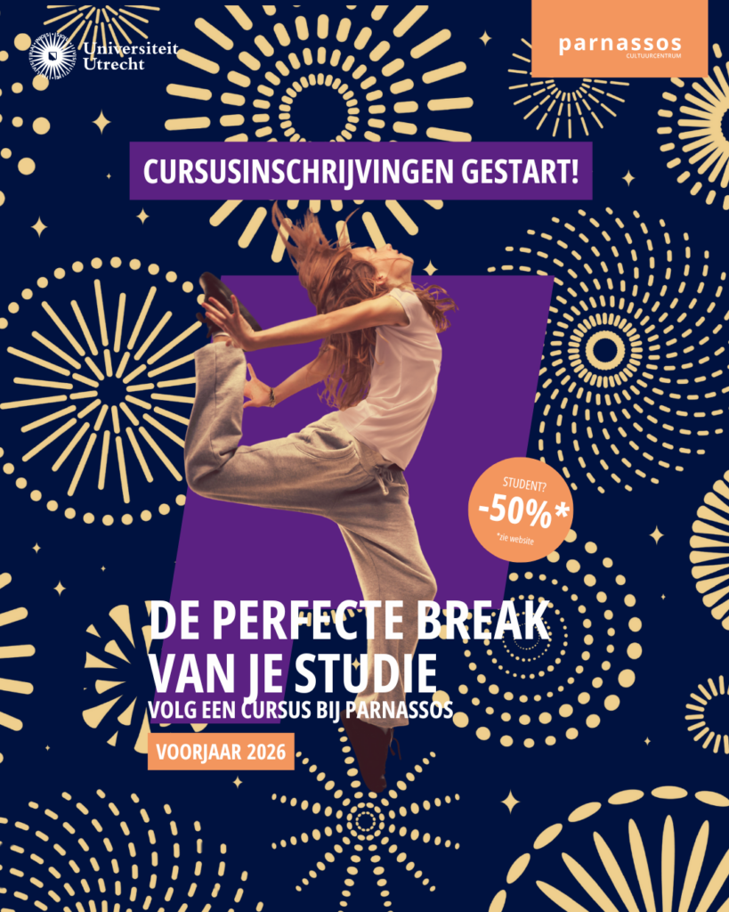 Het voorjaarsseizoen start in februari en biedt opnieuw bijna 100 cursussen in disciplines als dans, muziek, theater, beeldende kunst, digitale media, schrijven en body & mind. Van absolute beginner tot gevorderd maker: er is altijd iets dat bij je past. Veel cursussen zijn ook in het Engels beschikbaar, waardoor internationale studenten en medewerkers makkelijk kunnen aansluiten.