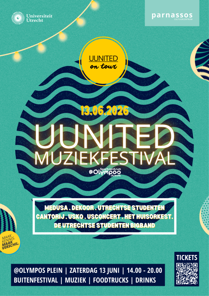 In het lustrumjaar van de Universiteit Utrecht trekken de studentenmuziekgezelschappen onder de noemer UUnited On Tour de stad in. Het UUnited Muziekfestival is het absolute hoogtepunt: bijna 400 studentmuzikanten delen hier samen het podium voor een zomerse dag vol muzikale diversiteit. Olympos wordt op 13 juni het kloppend hart van dit muziekfestijn!